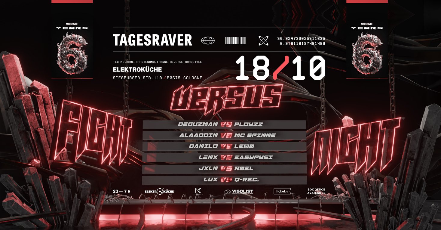 6 YEARS TAGESRAVER x FIGHT NIGHT 4 [ VERSUS ] @ ELEKTROKÜCHE