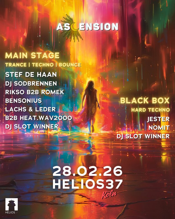 Ascension returns to Helios37 in Cologne on February 28 with Stef de Haan (NL) on the Main Stage.