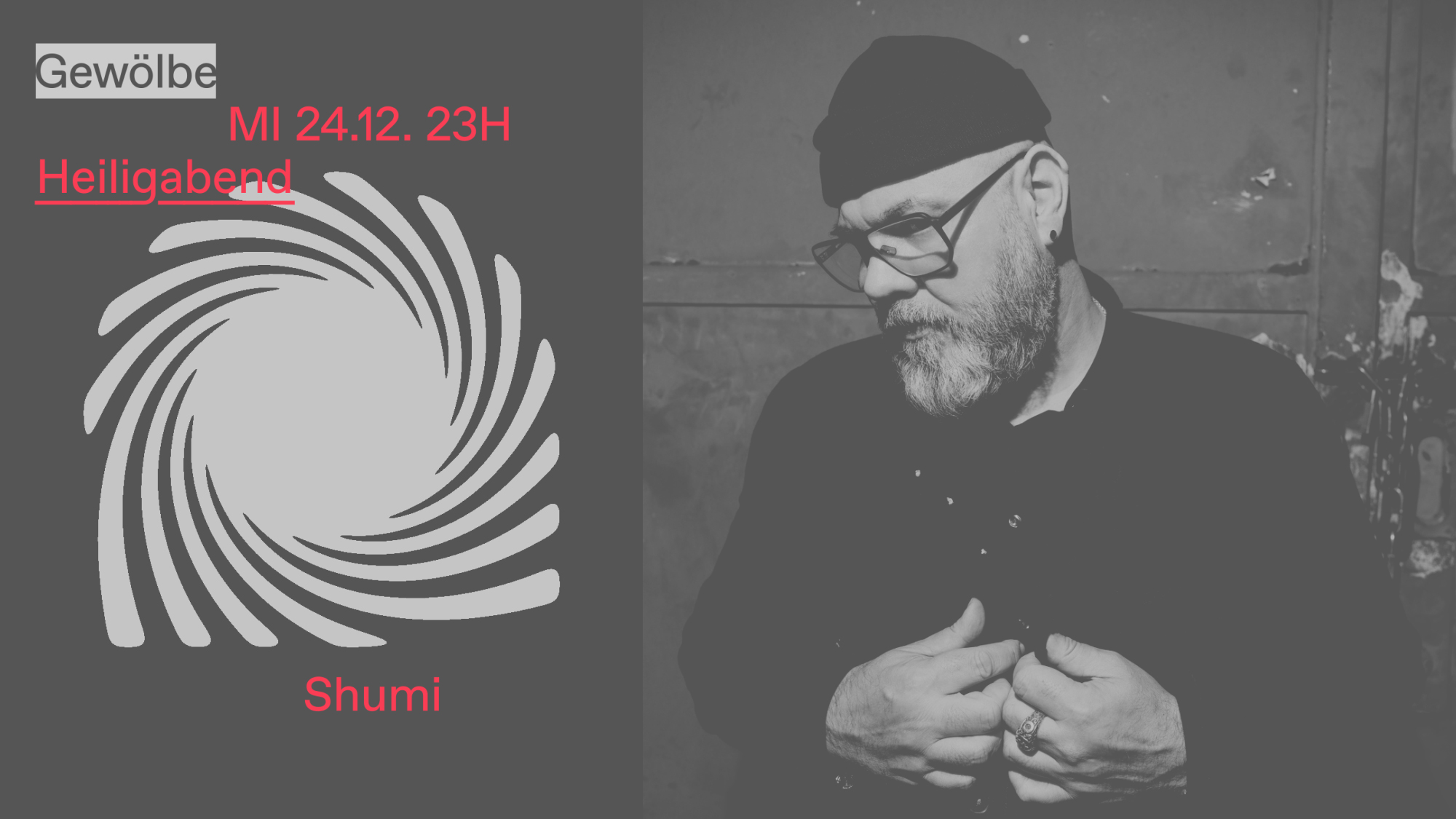 Heiligabend at Gewölbe has its own kind of magic. While the world outside settles into stillness, Shumi opens the doors to our traditional christmas danceoff. Warm yourselves up in this intimate and gently unfolding night. With his deep sense for groove and mood, our very own Santa guides the night with familiar ease, offering a refuge to move and reconnect.