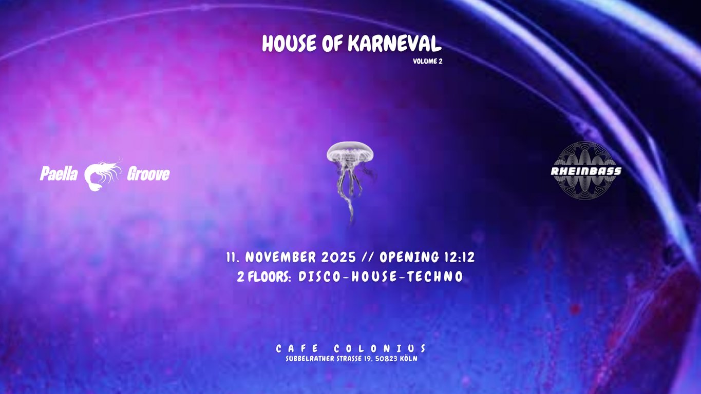 Ab 12:12 Uhr starten wir mit euch in den Tag – auf zwei Floors, mit Disco House 💃🪩 und Techno 🔊🔥. Während draußen Köln im Ausnahmezustand ist, verwandeln wir das Colonius in eine bunte Unterwasserwelt 🌊🪼. Mit Quallen, Lichtern und jeder Menge Liebe zum Detail wird es nicht nur laut, sondern auch richtig schön.