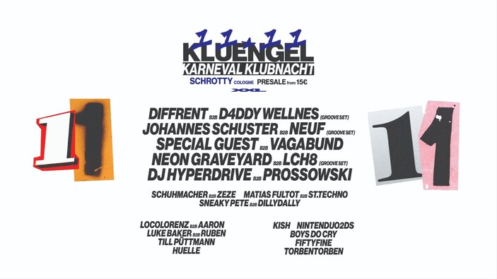 KLUENGEL XXL - 11.11. im Schrotty w/ Diffrent, Johannes Schuster, DJ Hyperdrive & vielen mehr