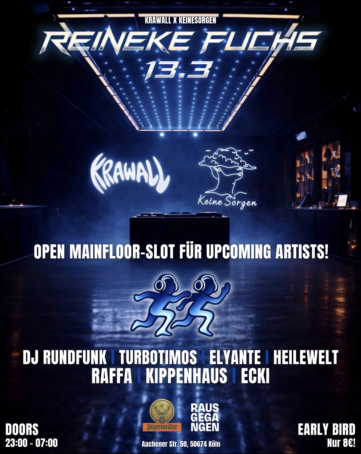FÜR UNSERE SESSION IM REINEKE FUCHS VERGEBEN WIR DESHALB EINEN B2B MAINFLOOR-SLOT AN UPCOMING ARTISTS!