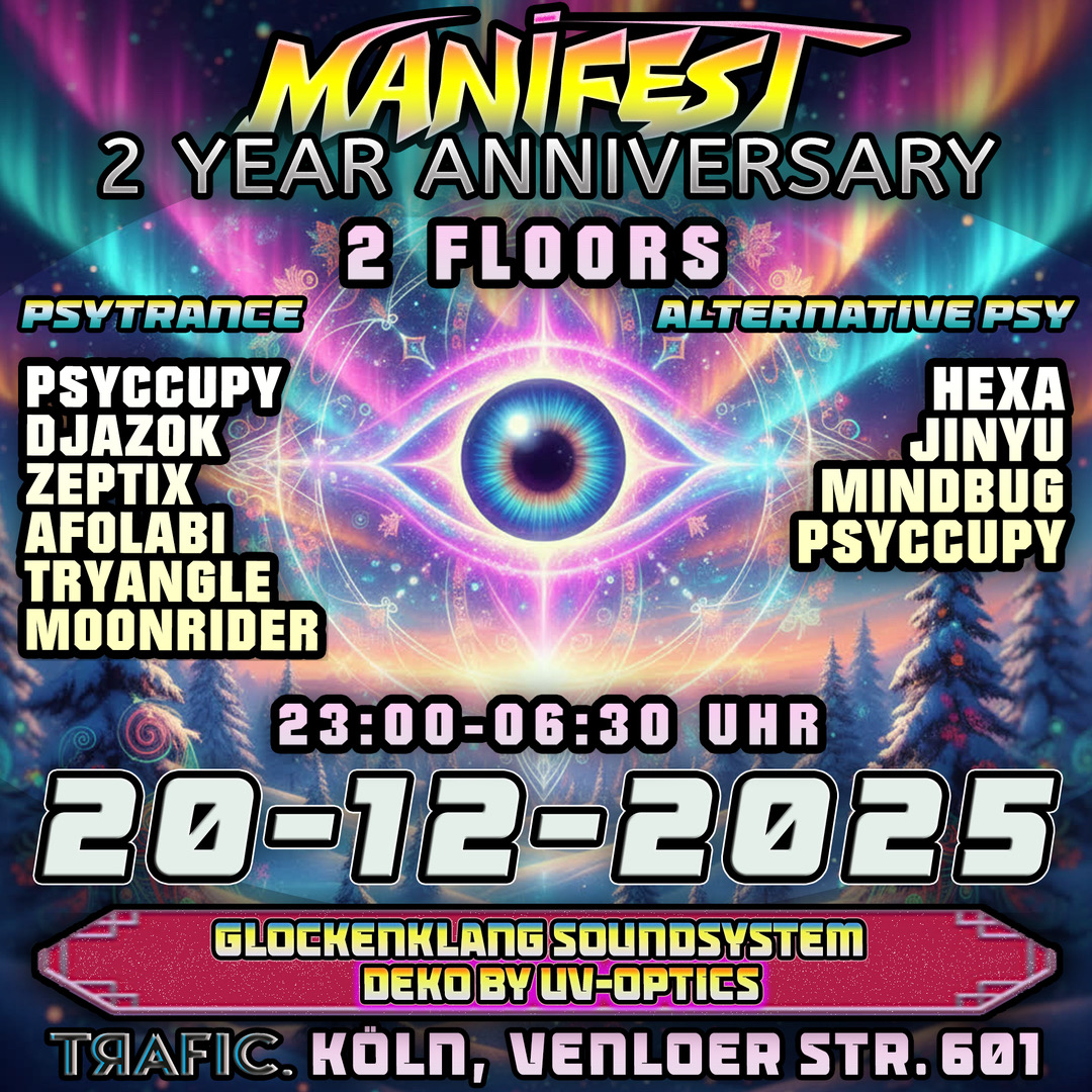 #ManifestAnniversary #Manifest2Years #ManifestCommunity #2YearAnniversary #ClubTrafic #KölnEvents #KölnParty #KölnNightlife #PsytranceGermany #PsytranceKöln #AlternativePsy #GoaGermany #GoaKöln #PsyFamily #PsyCommunity #UVOptics #UVDeko #GlockenklangSoundsystem #2Floors #PsyEvent #PsytranceEvent #KölnRave #RaveKöln #RaveCommunity #ElectronicEvent