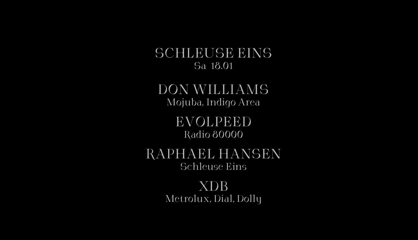 Schleuse Eins w/ Don Williams, evolpeeD, Raphael Hansen & XDB