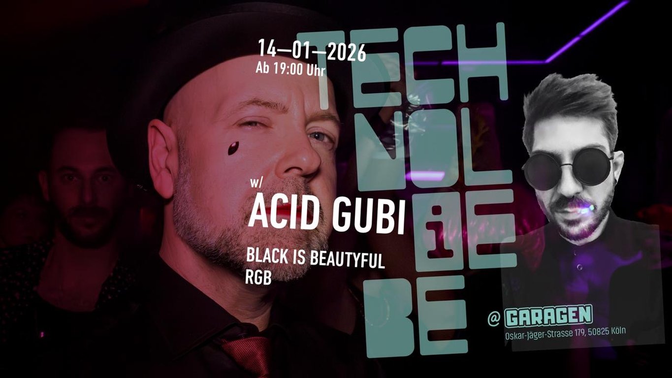 Wir eröffnen die TECHNOLIEBE 2026 direkt mit einem besonderen Highlight: ACID GUBI a.k.a. DIRTBOX a.k.a. Stefan Gubatz, der einigen sicher als YouTuber, Live Act, Hardwareexperte oder Producer bekannt sein dürfte, beehrt uns mit einem seiner in letzter Zeit selten gewordenen DJ Sets. Unser Resident RGB wird die CDJs für ihn fachgerecht auf Temperatur bringen und den Abschluss übernimmt der Kölner DJ und Producer BLACK IS BEAUTYFUL, der das Tempo bis zum offenen Ende sicher noch ein gutes Stück anziehen wird. Ohne Zweifel a night to remember.