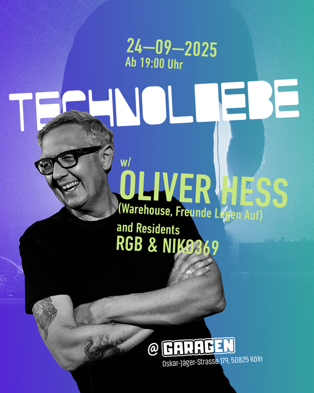 Heute gibt sich Kölner DJ-Legende und echter Ehrenfelder Jung OLIVER HESS die Ehre bei unserer TECHNOLIEBE Mittwochsession im Ehrenfelder Garagen Club. Für Oli wird's ein Heimspiel und für uns das Highlight im September. Vortriebigen Support bekommt er natürlich von unseren Residents.