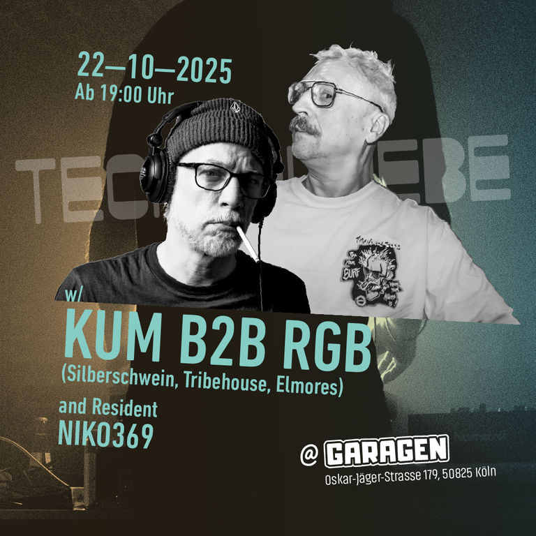 Uns besucht ein Techno-Urgestein aus dem Ruhrgebeat: KAI-UWE MÜLLER ist ein aufrechter Raver der ersten Stunde und einer der nerdigsten Musik Nerds die wir kennen. Und wir kennen eine Menge… Seine Sets sind vielseitig, immer wieder überraschend und haben einen unverwechselbaren Flow dem man nicht entkommt. Ob hinter den Decks, an der Bar oder auf dem Dancefloor – seit über 30 Jahren gehört KUM noch immer zu den Last Men Standing auf jeder Party und feiert mühelos auch Partyschlümpfe unter den Tisch, die seine Enkel sein könnten.
